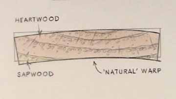 Have you ever noticed that warps in tabletops, deck boards, siding, floor boards and even cutting boards are almost always concave on the top or exposed side? And that this is the case no matter which side of the wood (heartwood, sapwood or quartersawn) is up or out, or whether one or both sides of the wood is finished?
